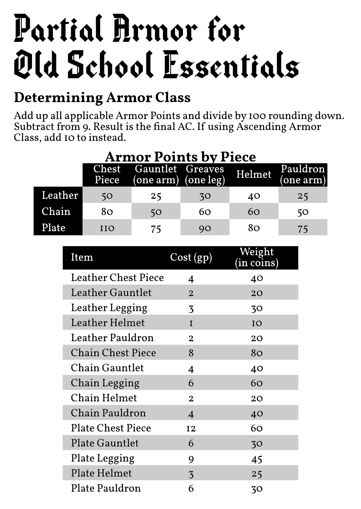 Partial Armor for Old School Essentials
